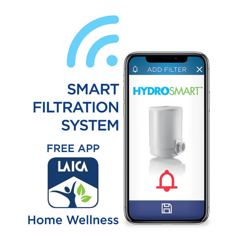 HYDROSMART SZŰRŐRENDSZER vízszűrő betét cseréjéhez használja az INGYENESEN LETÖLTHETŐ LAICA HOME WELLNESS ALKALMAZÁST.
