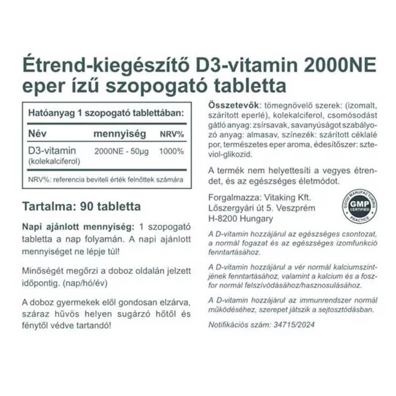 Ezt az epres szopogató tablettát azoknak ajánljuk, akik szeretnének egy egyszerű, finom és természetes megoldást a D3-vitamin pótlására, különösen azoknak, akik napfényhiányos időszakban élnek, vagy étrendjük nem tartalmaz elegendő D-vitamint. Tökéletes választás minden családtag számára!